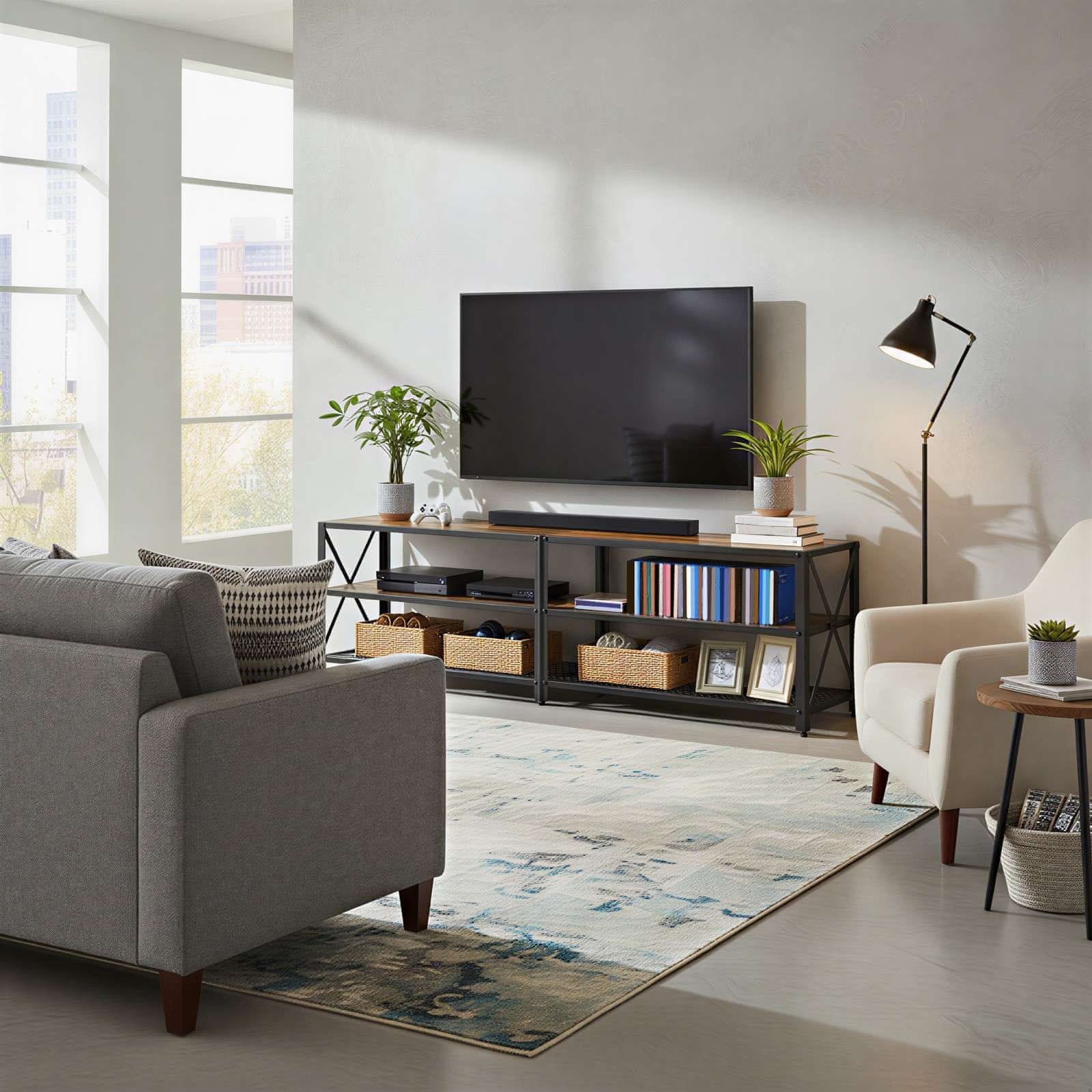 Ta TV-alus pakub piisavalt ruumi ja tugevat tuge teie telerile ja meediasüsteemidele. Selle stiilne disain sobib sujuvalt elutuppa või magamistuppa, pakkudes nii hoiuruumi kui ka kaasaegset välimust teie meelelahutusnurgale. Celoten opis