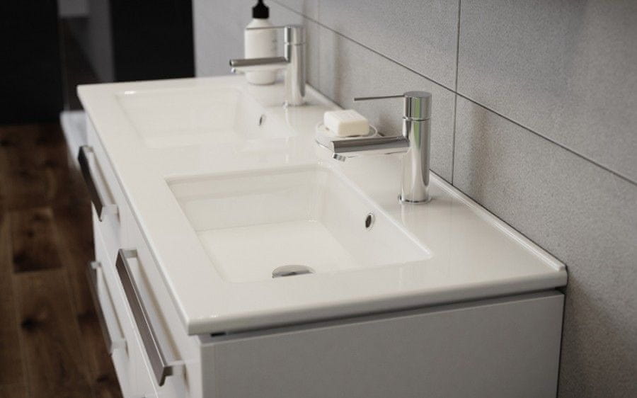 TBoss Kopalniška omarica z umivalnikoma Modena 120 cm, bela visoki sijaj