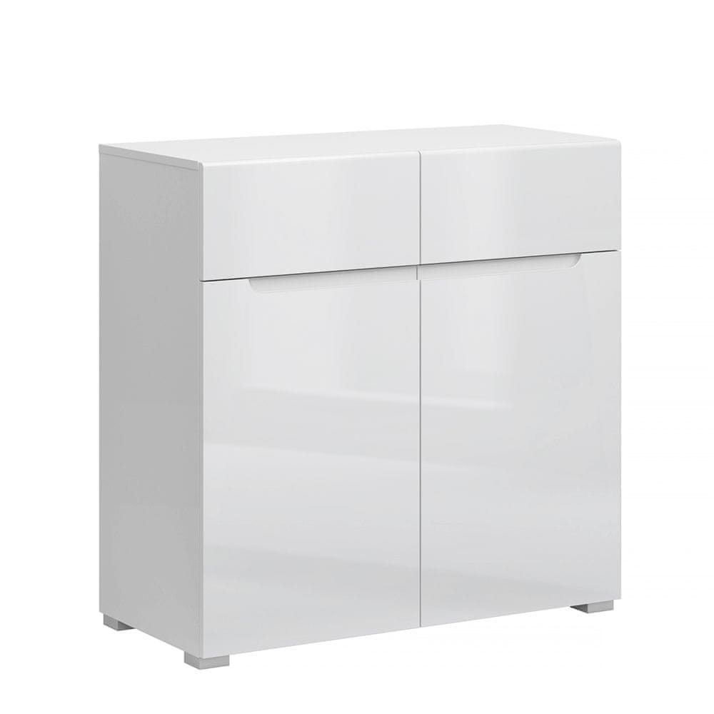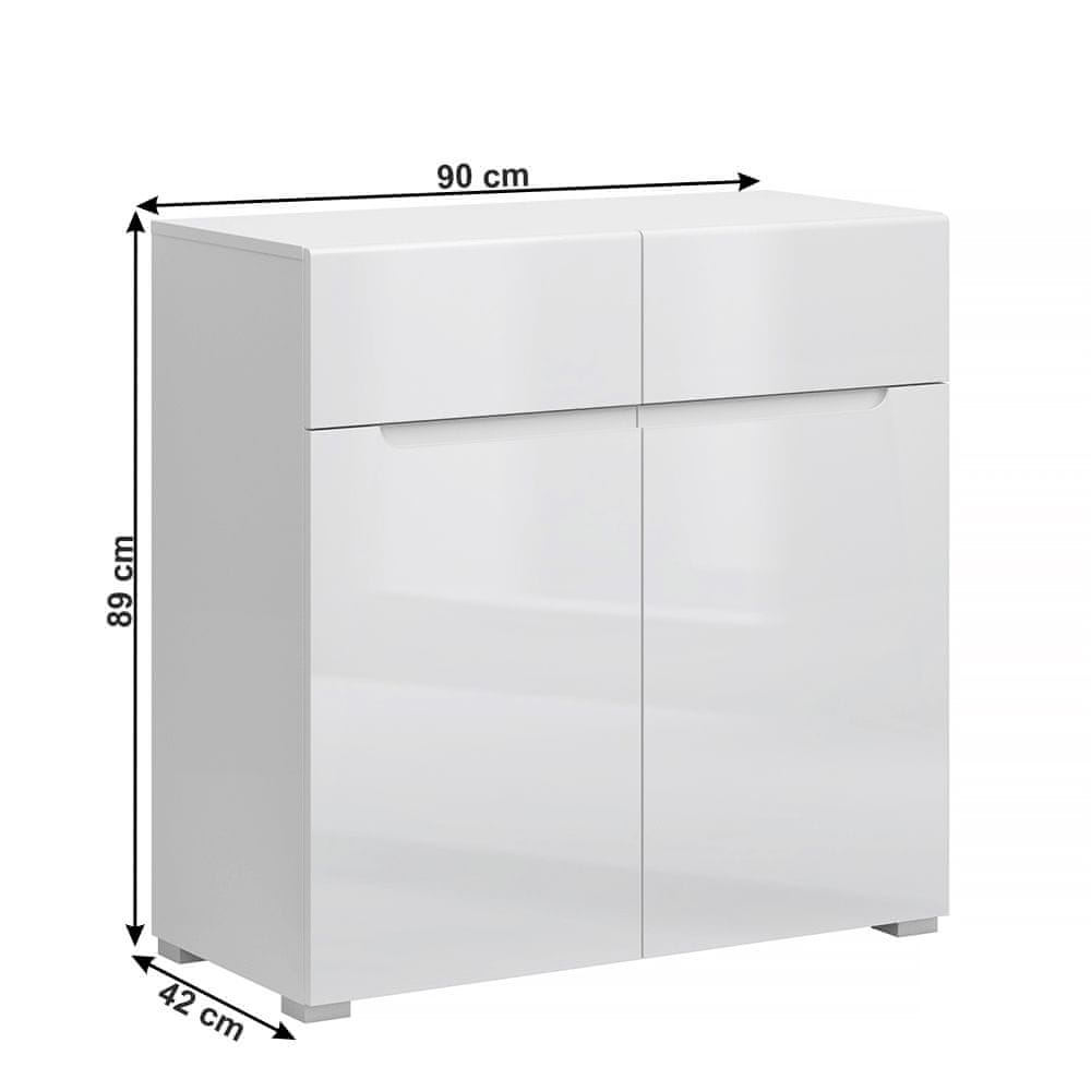 KONDELA Dvovratna komoda s predali Jolk 2D2S - bela/bel sijaj