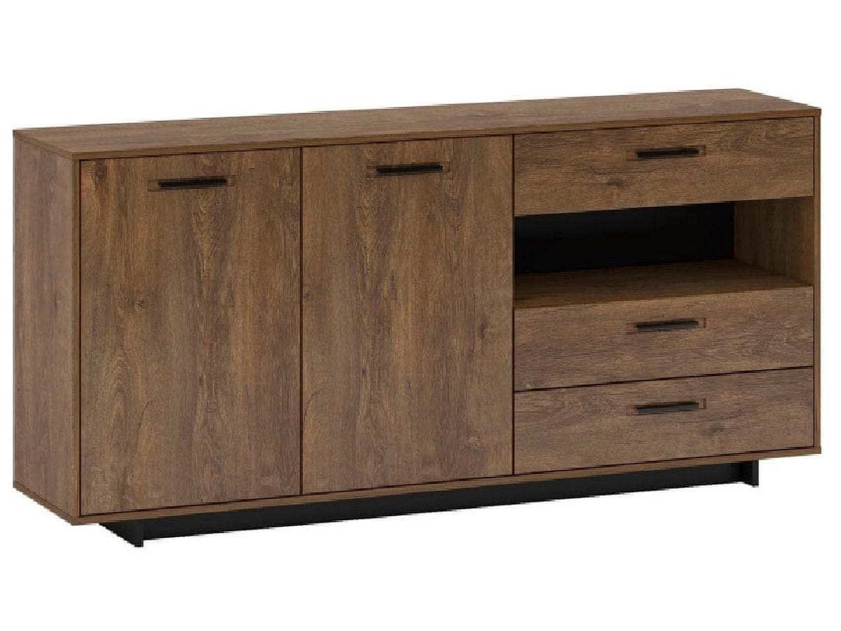 Komoda je dostavljena razstavljena, njena sestava zahteva določeno spretnost. Vzdrževanje je preprosto – le obrišete ga z vlažno krpo. Komoda ima tri predale in dvoje vrat, kar zagotavlja veliko prostora za shranjevanje vaših potreb. Z globino 40 cm, višino 86,2 cm in širino 179,7 cm je komoda idealne velikosti za večino notranjih prostorov.