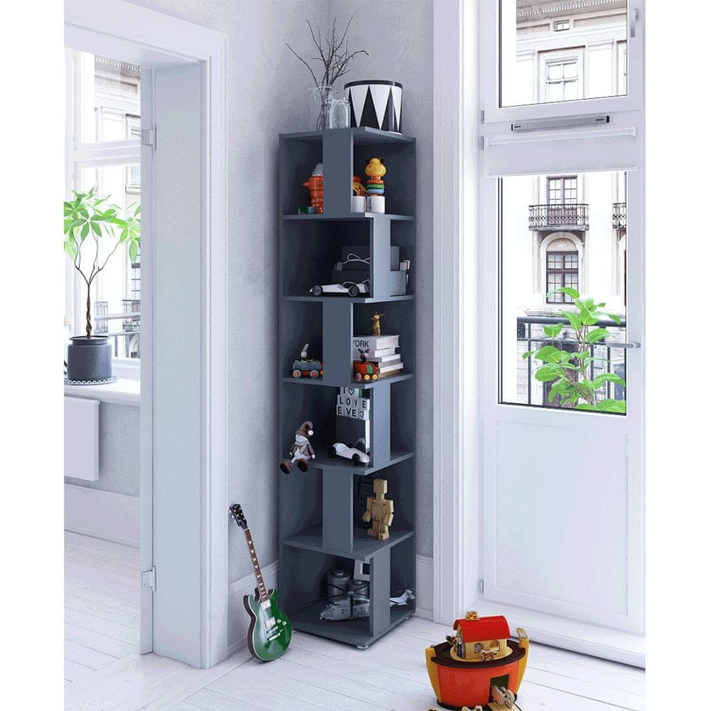 Regal ima dimenzije 38 cm (širina), 38 cm (globina) in 186,2 cm (višina). Njegova temna barva in moderen dizajn sta idealna rešitev za tiste, ki iščejo funkcionalno in estetsko pohištvo za svojo pisarno. Kljub temu, da je regal brez vrat ali predalov, ponuja dovolj prostora za shranjevanje dokumentov ali drugih potrebnih stvari.