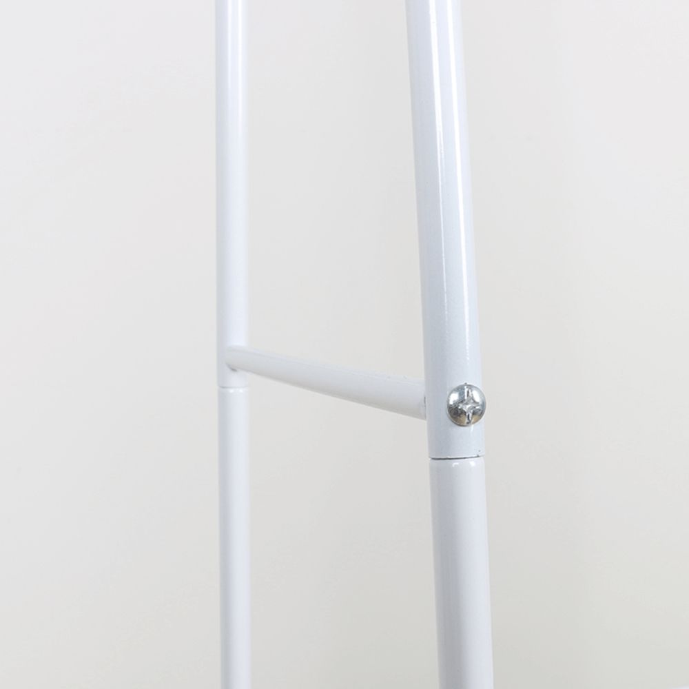 Spoznajte praktičnega pomočnika, ki bo z veseljem poskrbel za vaša oblačila. Kovinsko stojalo za oblačila RETOR je sestavljeno iz dveh polic, na katere lahko odložite torbico, šal ali čevlje, v zgornjem delu pa palica za obešalnik. Njegova trdna konstrukcija je izdelana iz kovine v fini beli barvi. Skupne dimenzije stojala so (ŠxGxV): 60×35×160 cm in se dostavi v razstavljenem stanju. Naj ne čaka dolgo in ga uporabite v spalnici, otroški ali študentski sobi, predsobi ali kjer koli vam ustreza.