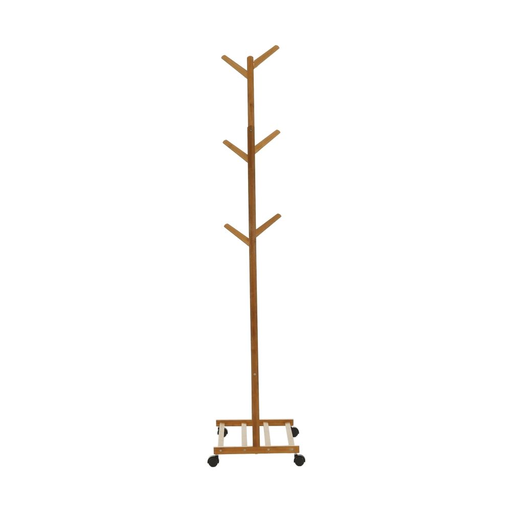 Premično stojalo VIKIR TIP 1, praktičen in eleganten pomočnik, za vedno naredi konec obešanju oblačil. Dimenzije stojala so (ŠxGxV): 60×35×174 cm. Stojalo ima šest kavljev za obešanje na primer torbice, dopolnjuje pa ga spodnja polica, na katero lahko odložite na primer čevlje. Najbolj pa vas bo razveselila palica, kamor lahko udobno obesite obešalnike z oblačili. Konstrukcija je narejena iz bambusa, na katerem so štiri plastična kolesa. Zahvaljujoč kolesom je rokovanje s stojalom lažje. Nosilnost stojala je 15 kg in se dostavi v razstavljenem stanju.