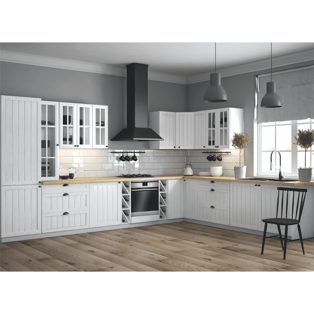Spodnja omarica z dvema policama za kuhinjo Provance Zaključek: laminirano DTD Barva: bela Dimenzije (ŠxVxV): 25×45×72 cm Debelina materiala: 15 mm Spodnje omarice so dobavljene brez delovnega pulta. Delovna plošča je debela 3 cm. Za spodnje omarice je treba naročiti podstavek. Celoten opis