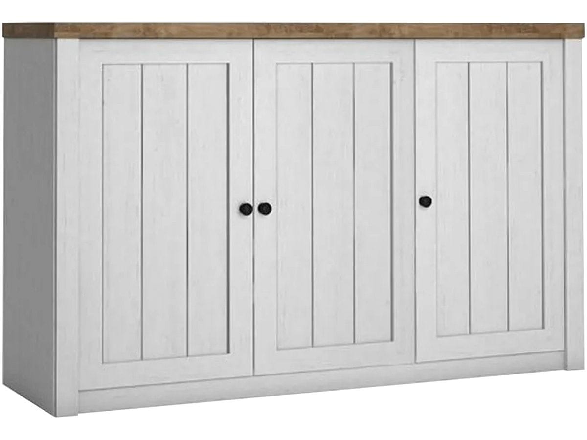Komoda PROVANCE K3D je trovratna komoda, ki jo lahko kombinirate z ostalimi elementi iz modelne serije Provance. Sistem Provance je moderna sekcijska garnitura v podeželskem stilu. Posamezni elementi kompleta so dopolnjeni z originalnimi ročaji. Sestav je izdelan iz laminiranega DTD v barvni shemi Andersen bor / hrast Lefkas. Debelina materiala notranjih polic je 1,6 cm.