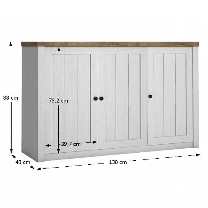 KONDELA Provance K3D trovratna komoda - Andersenov bor / Lefkada hrast
