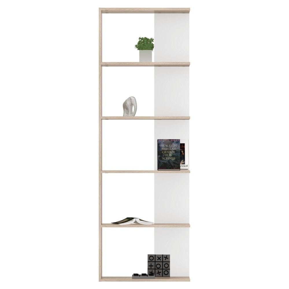 Večnamenski regal AGATIO združuje moderen videz in praktično uporabnost. Izdelan je iz trpežne laminirane DTD v elegantni barvni kombinaciji hrasta sonoma in bele. Pet prostornih polic nudi dovolj prostora za shranjevanje in razstavljanje priljubljenih knjig, dekoracij, rastlin ali drugih dodatkov, ki bodo prostoru dodali poseben značaj. Regal je idealen dodatek za dnevno sobo, spalnico ali pisarno in se zlahka prilega različnim stilom opreme. Agatio ponuja dimenzije (ŠxGxV): 60×25×180 cm, z debelino materiala 1,6 cm, višino med policami 34 cm in globino police 23,2 cm. Vsaka polica ima nosilnost 5 kg, kar zagotavlja stabilnost in praktičnost pri vsakodnevni uporabi.