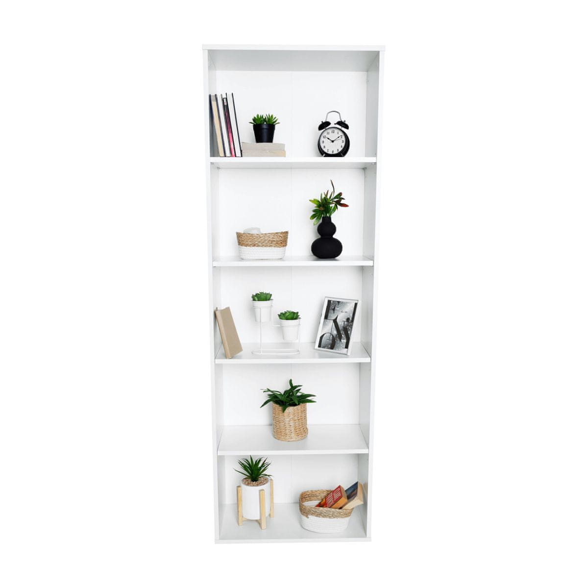 Z dimenzijami 60 cm v širino, 30 cm v globino in 179,1 cm v višino ponuja dovolj prostora za shranjevanje različnih stvari. Knjižna omara vsebuje pet polic, ki so primerne za shranjevanje knjig, okraskov ali pisarniškega materiala. Zahvaljujoč svoji svetli barvi se zlahka vključi v vsak interier in mu daje moderen videz.