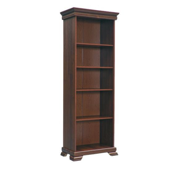 Regal KORA KR1 je visok regal s štirimi policami, ki ga je možno kombinirati z ostalimi elementi iz modela Kora. Sistem Kora je rustikalna sekcijska garnitura, s katero lahko opremite dnevno sobo, spalnico, jedilnico ali delovno sobo. Za pohištvo je značilen masivnejši videz, ki ga dopolnjujejo okrasne letve in kovinski ročaji. Material za izdelavo je laminiran DTD v barvi Samoa King, posamezne elemente pa lahko naročite tudi v barvi hrast canyon. Višina nog je 5,5 cm, debelina materiala police pa 1,5 cm.