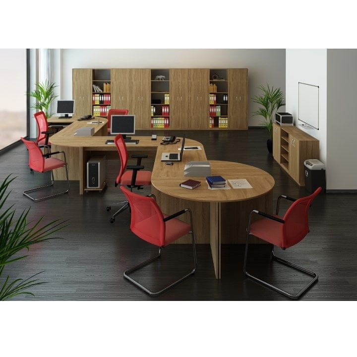 Regal TEMPO ASISTENT NEW 001 je visok regal s štirimi policami, ki ga je možno kombinirati z ostalimi elementi iz serije Tempo Assistant New. Sistem Tempo Assistant New je pisarniški sektorski set, ki je primeren za uporabo pri opremljanju pisarn, učilnic, šolskih učilnic ali sejnih sob. Gre za visokokakovosten slovaški izdelek iz laminiranega DTD v barvni različici hrasta sonoma, na voljo pa je tudi v drugih barvah. Posamezni elementi kompleta so dopolnjeni z ABS robovi in kovinskimi ročaji.