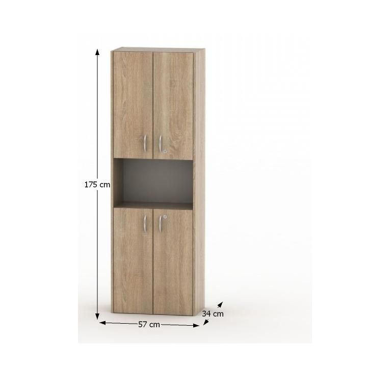 Regal TEMPO ASISTENT NEW 003 je visok regal z dvema omaricama na zaklepanje in odprtim prostorom, ki se lahko kombinira z drugimi elementi iz serije Tempo Assistant New. Sistem Tempo Assistant New je pisarniški sektorski set, ki je primeren za uporabo pri opremljanju pisarn, učilnic, šolskih učilnic ali sejnih sob. Gre za visokokakovosten slovaški izdelek iz laminiranega DTD v barvni različici hrasta sonoma, na voljo pa je tudi v drugih barvah. Posamezni elementi kompleta so dopolnjeni z ABS robovi in kovinskimi ročaji.