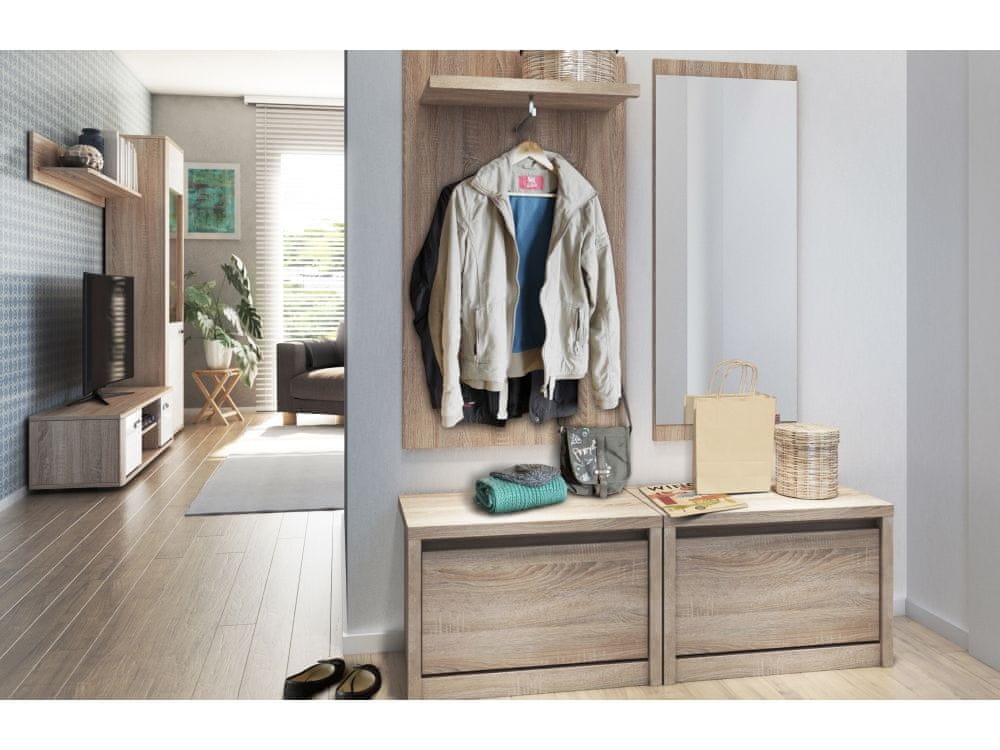 Viseči panel Norty tip 25 v elegantnem dizajnu hrasta sonoma je idealna rešitev za moderne interierje. Ta praktičen in eleganten dodatek za predsobo ne ponuja le funkcionalnosti, temveč tudi estetski videz, ki se poda v vsak dom.