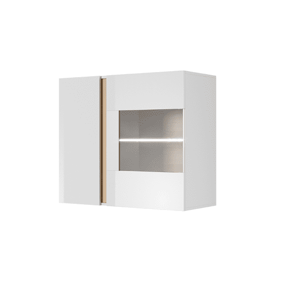 Viseča vitrina CITY 96 bo prava za vas. Zagotavlja vam prostor za shranjevanje za dvojimi vrati, ki je tudi v modernem dizajnu. Na voljo sta vam 2 polici, od katerih je ena steklena z največjo nosilnostjo 3 kg. Nosilnost druge police je največ 5 kg. Vitrino lahko popestrite tudi z LED osvetlitvijo, ki jo lahko kupite za doplačilo. Dimenzije vitrine so (ŠxGxV): 96,5×40×82,5 cm. Moderno pohištvo za dnevno sobo, ki ponuja prefinjen videz, čiste linije in dovršene detajle, so poimenovali City. S tleskom prsta bo spremenil videz vaše dnevne sobe. Pohištvo je izdelano iz laminiranega DTD (iverala) in se ponaša z trpežnimi ABS robovi. Vrata so brez ročaja in se odpirajo s sistemom Push up touch. Barvna kombinacija hrast grandson, bela in beli sijaj bo dizajn vaše dnevne sobe dvignila na višjo raven.