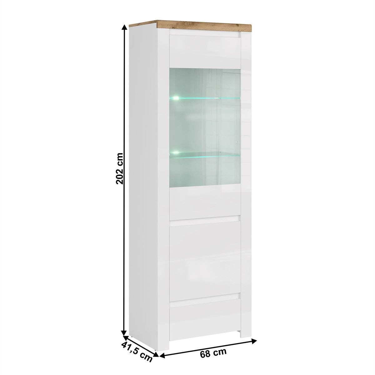 KONDELA Vitrina Vilgo 1D1W1S - beli sijaj / hrast wotan