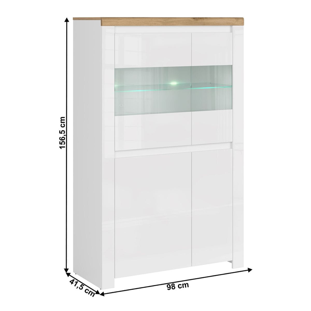 KONDELA Vitrina Vilgo 2D2W - beli sijaj / hrast wotan