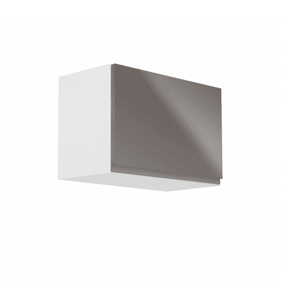 Zgornja omarica, Aurora G50K Obdelava: DTD laminat / MDF Barva: bela / siva, lakirana v visokem sijaju Dimenzije (ŠxVxV): 50×32×40 cm Debelina materiala: 15 mm Sistem za tiho zapiranje vrat Delovni pult ni vključen v omare. Celoten opis