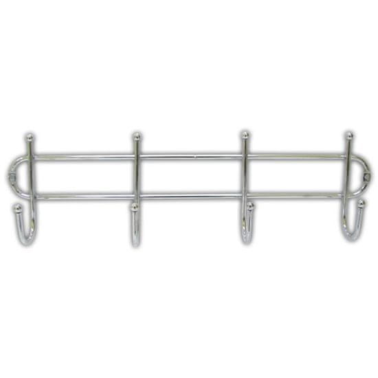 Kromiran žični obešalnik s 4 kavlji. Dimenzije 37 × 10,5 cm. EAN 8591177003366