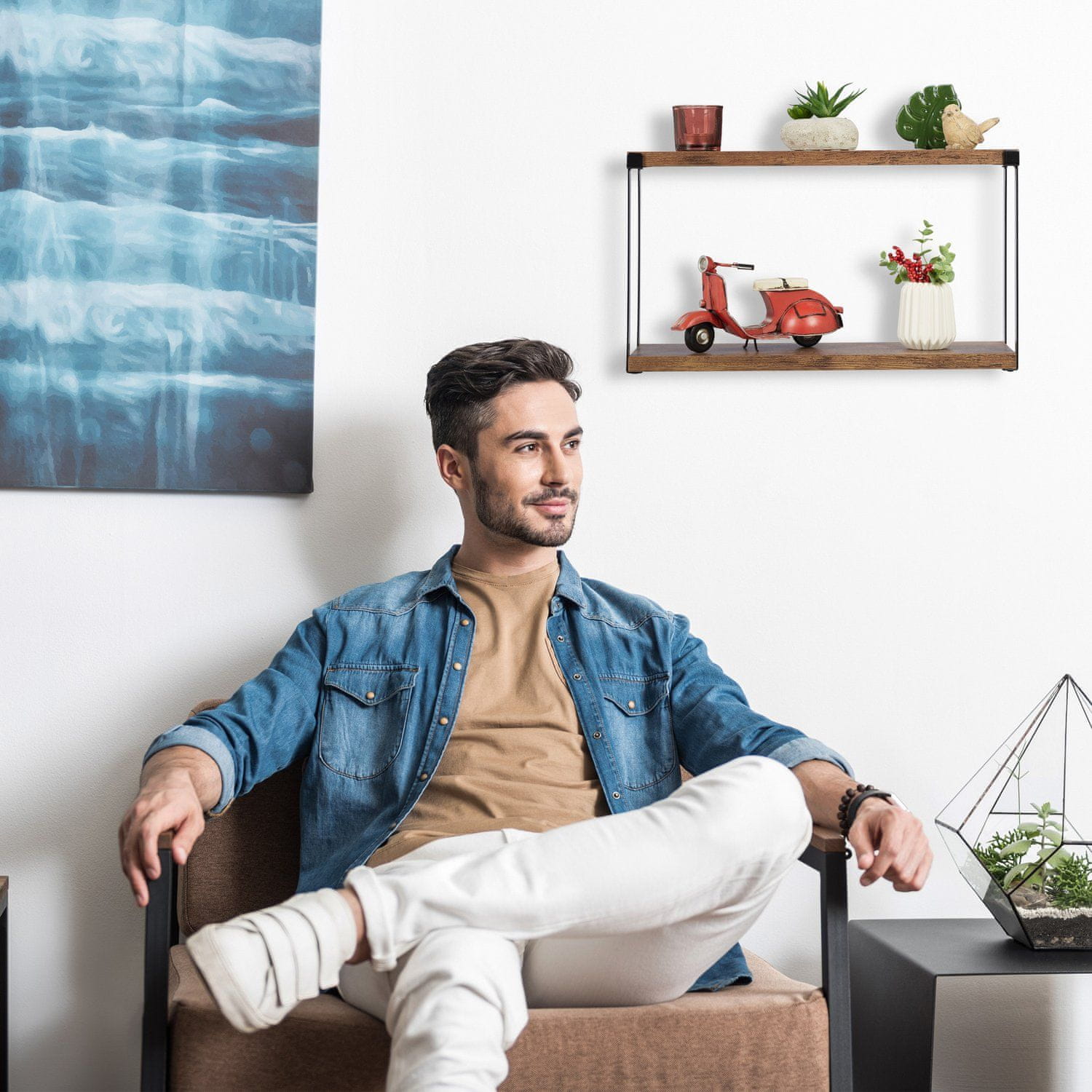 Industrijska stenska polica polepša vaš prostor s sodobnim pridihom, kot nalašč za razstavljanje dekorja in organiziranje osnovnih stvari. Njegov eleganten dizajn se brezhibno prilega dnevnim sobam, kuhinjam in še več.