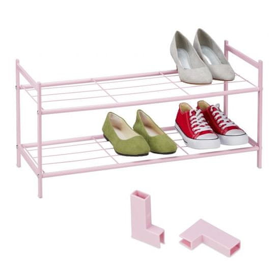 Rožnato kovinsko stojalo za čevlje nudi elegantno organizacijo in polepša vsak prostor s svojo živahno barvo in obliko, ki jo je mogoče zložiti.