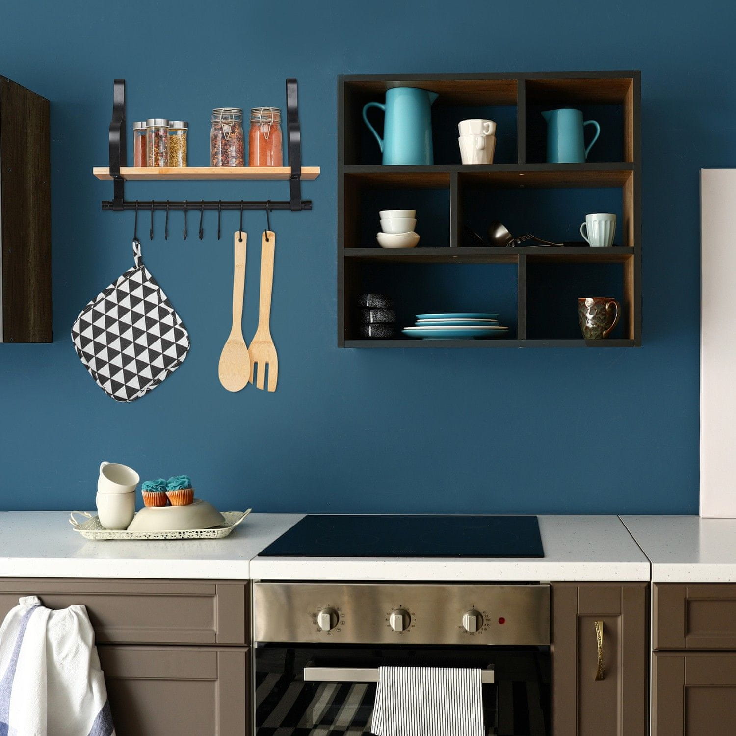 Industrijska kuhinjska polica izboljša shranjevanje s stilom in ponuja sodobno rešitev za organiziranje začimb, čaja in pribora. Ta stenska polica združuje naravni les in črno kovino za trendovski Celoten opis