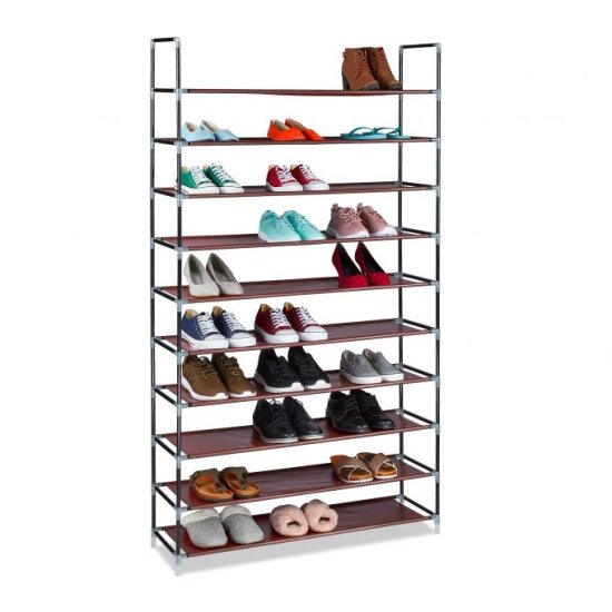 Povečajte prostor za shranjevanje čevljev s to 10-nivojsko polico za čevlje, ki ponuja dovolj prostora in enostavno vzdrževanje z vodoodbojnimi netkanimi policami.