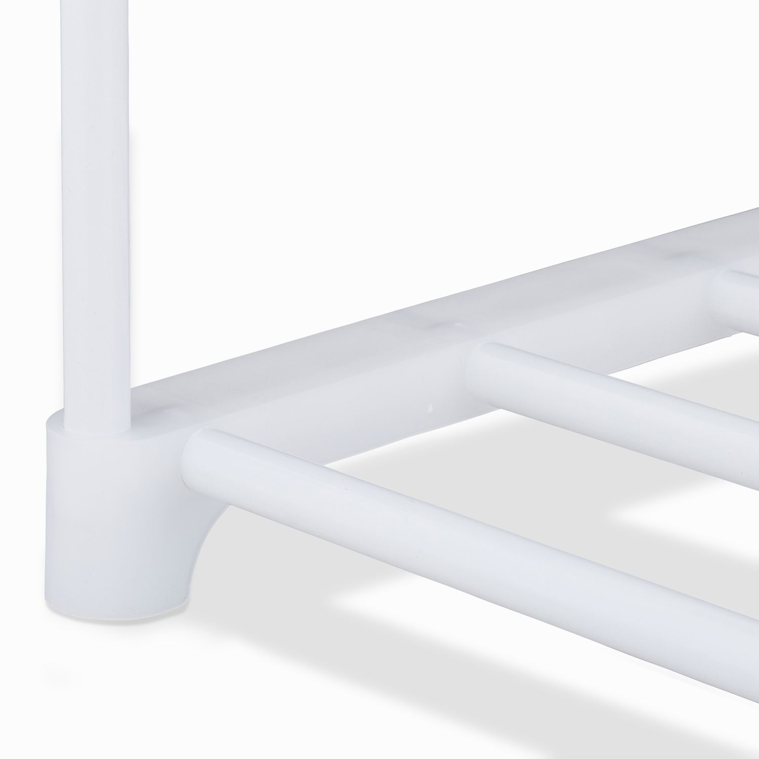 Prostorno stojalo za čevlje izboljša pametno shranjevanje in ponuja dovolj prostora za organizirano razporeditev čevljev. Shranite do 4 pare na polico, s čimer zagotovite hiter dostop, ki ustreza Celoten opis