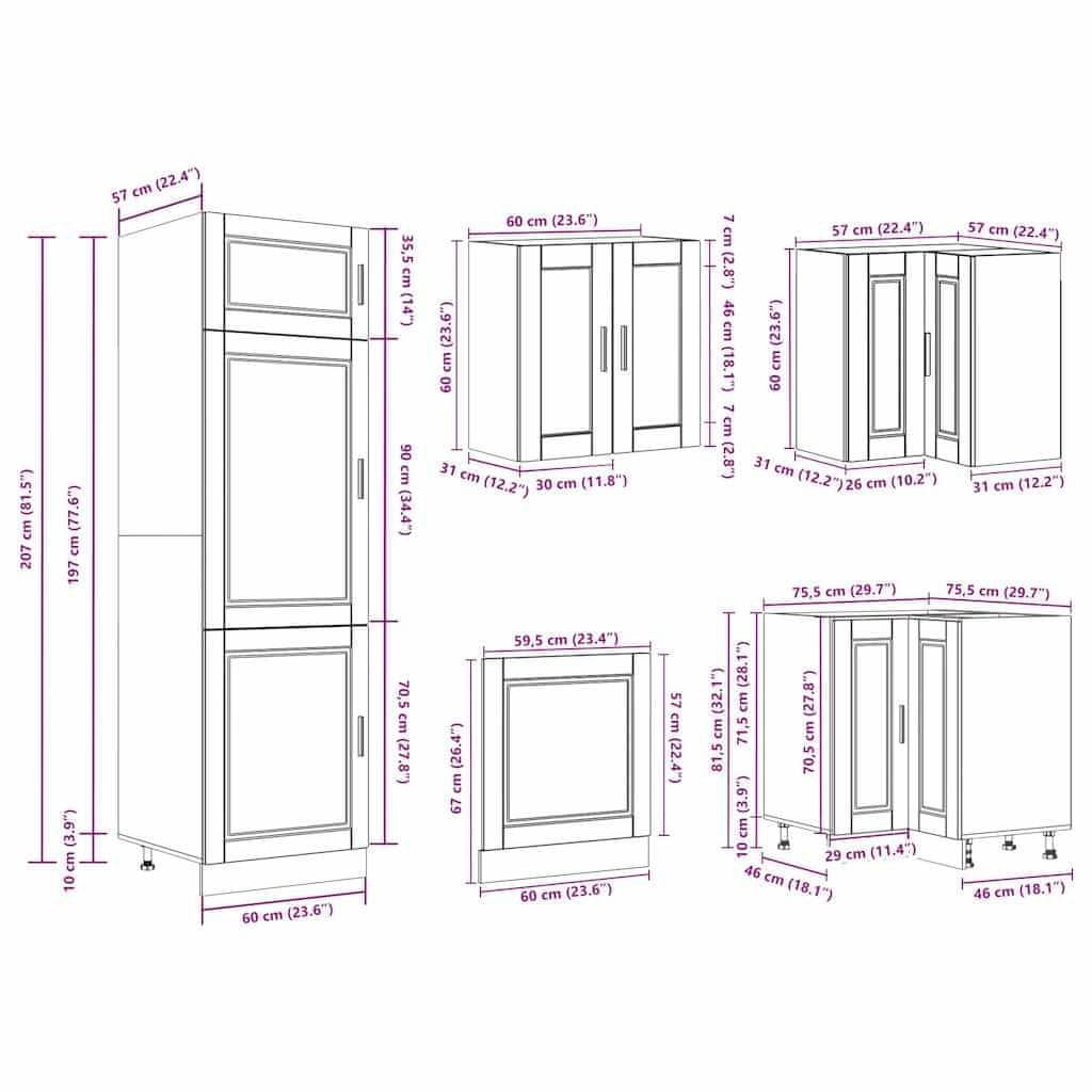 • Obilo prostora za shranjevanje: Komplet kuhinjskih omaric ima veliko predalov in ponuja dovolj prostora za shranjevanje skled, krožnikov, loncev in drugih kuhinjskih aparatov.