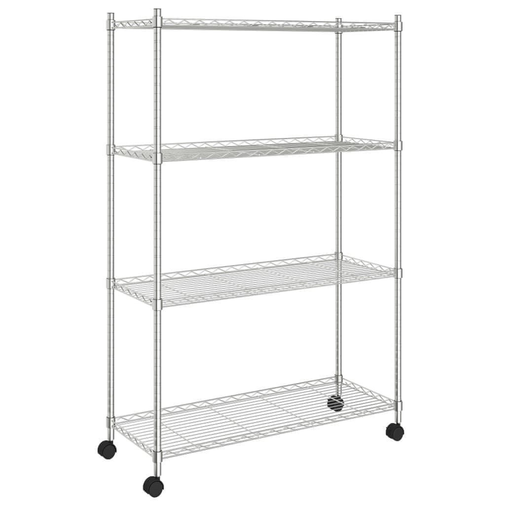 Vidaxl 4-nadstropni regal s kolesi 90x35x142 cm krom 200 kg