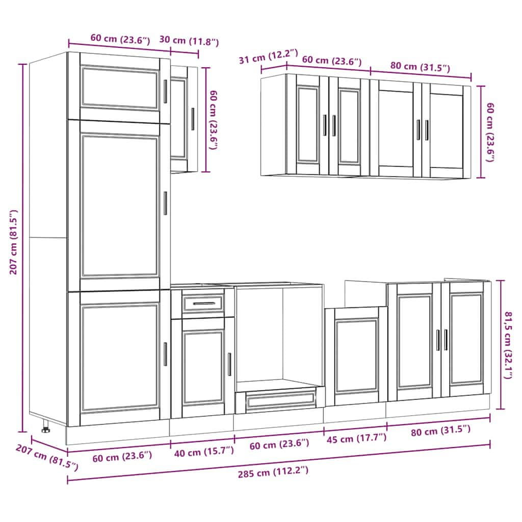 Ta 8-delni komplet kuhinjskih omaric s svojo elegantno zasnovo optimizira vaš kuhinjski prostor in nudi veliko prostora za shranjevanje vaših osebnih stvari!