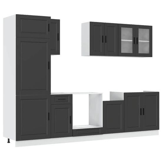 Vidaxl 8 kosov kuhinjska omarica Porto črn inženirski les