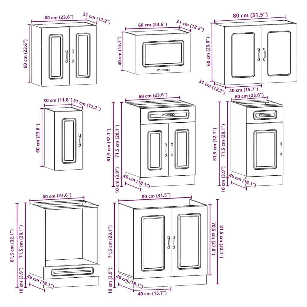 Ta 8-delni komplet kuhinjskih omaric s svojo elegantno zasnovo optimizira vaš kuhinjski prostor in nudi veliko prostora za shranjevanje vaših osebnih stvari!