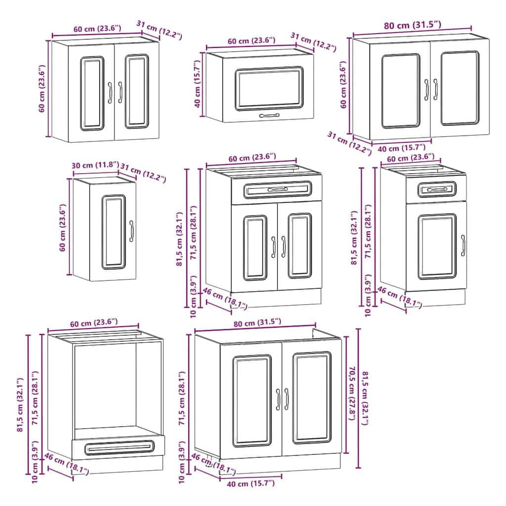 Ta 8-delni komplet kuhinjskih omaric s svojo elegantno zasnovo optimizira vaš kuhinjski prostor in nudi veliko prostora za shranjevanje vaših osebnih stvari!