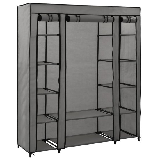 Vidaxl Garderobna omara s predelki in palicami siva 150x45x176cm blago