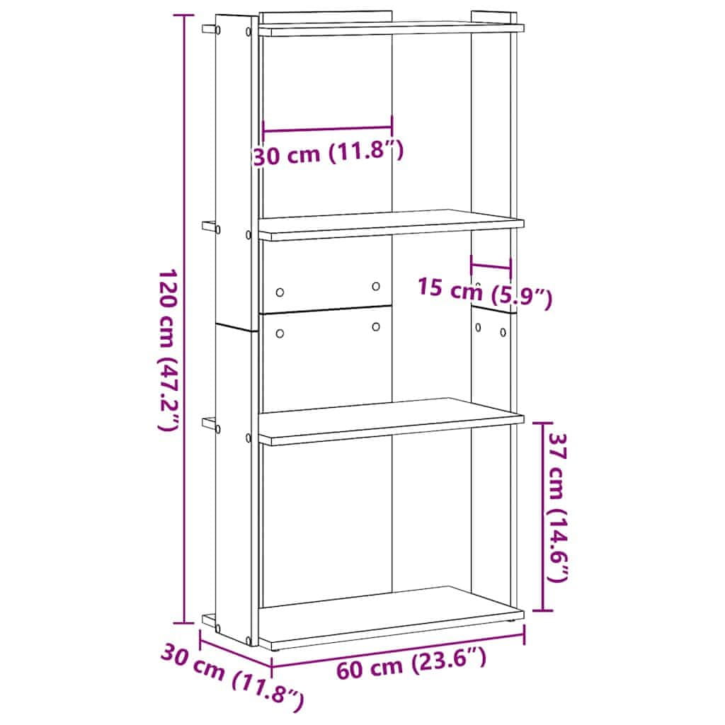 Vidaxl Knjižna omara 3-nadstropna starinski les 60x30x120 cm inž. les