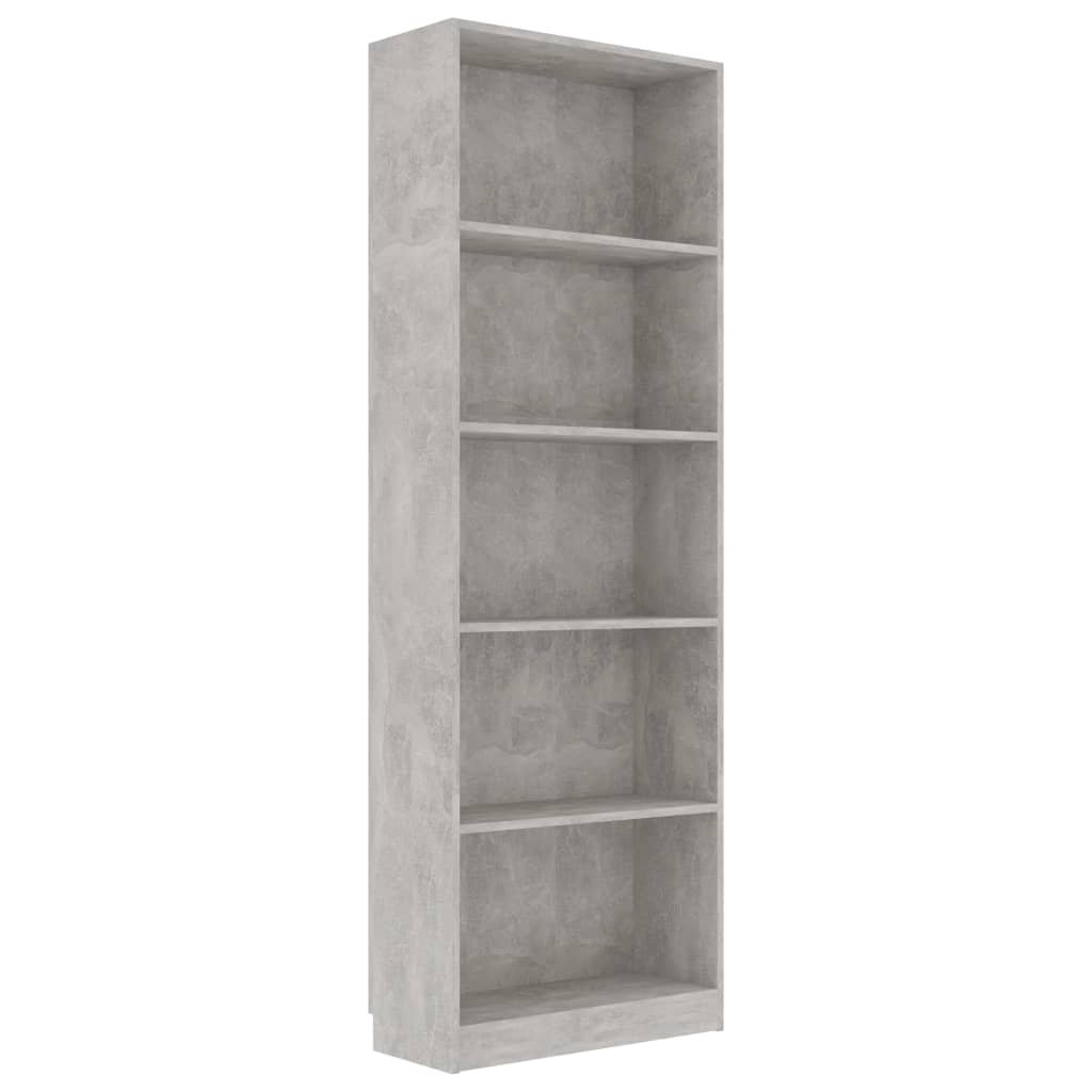 Vidaxl Knjižna omara 5-nadstropna betonsko siva 60x24x175 cm