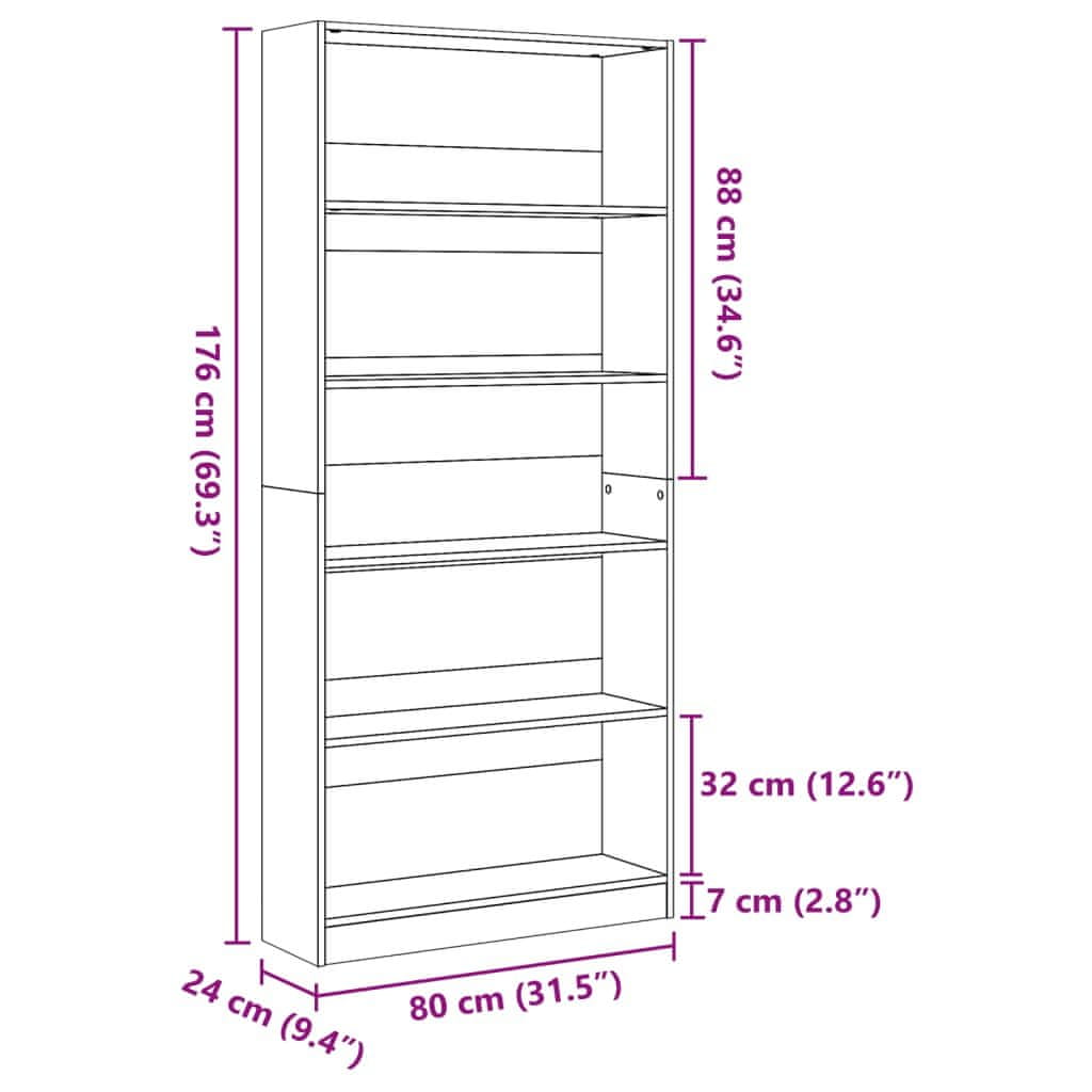Vidaxl Knjižna omara dimljeni hrast 80x24x176 cm inženirski les