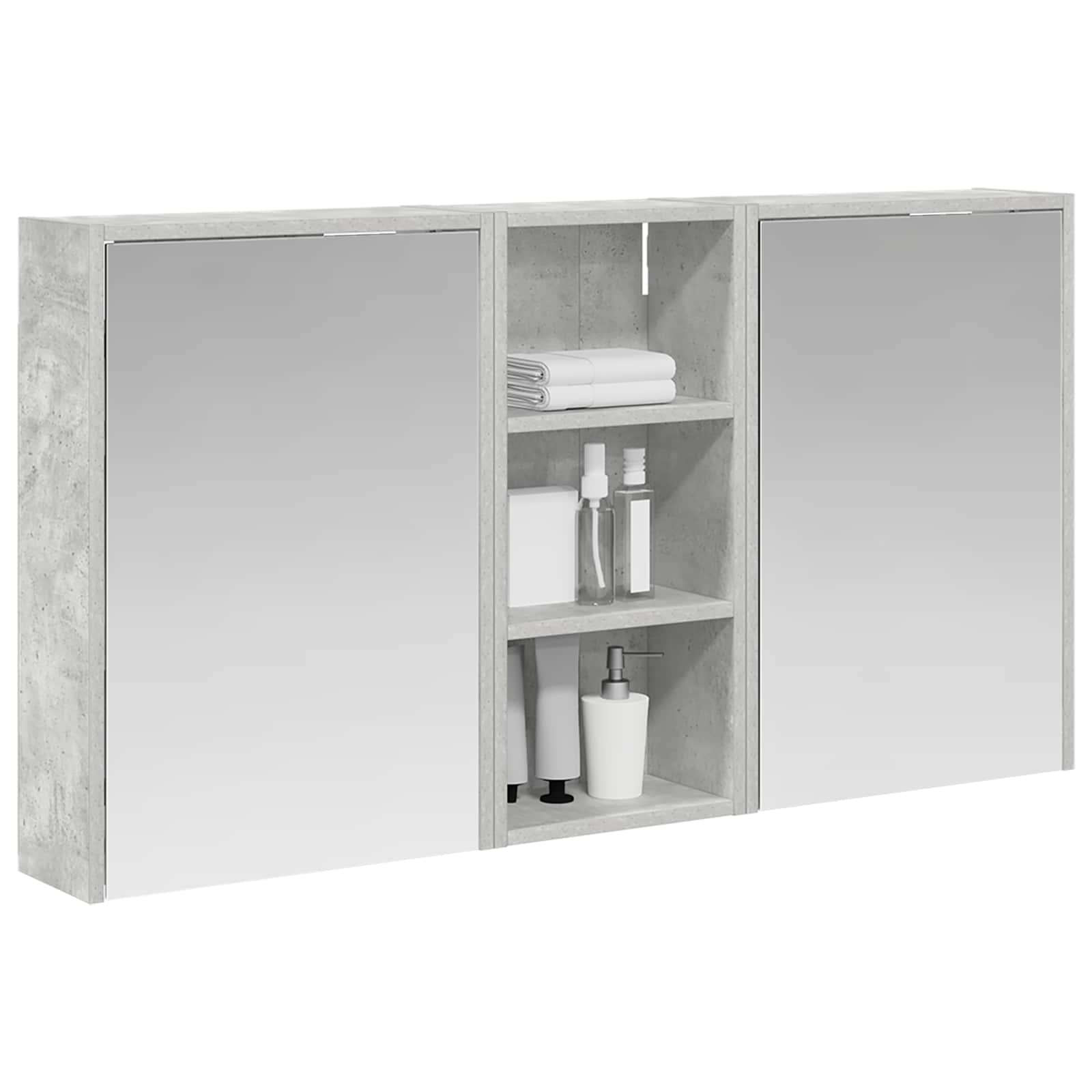 Ta komplet kopalniških omaric ponuja stilsko in funkcionalno rešitev za moderne kopalnice. Z inženirskim lesom in elegantnimi linijami, vključuje dvosmerno ogledalo, ki prostor vizualno povečuje in dodaja zanimivost ter vsestranskost. Primerna za lastnike stanovanj in oblikovalce, nudi učinkovito shranjevanje ter izboljšuje estetiko kopalnice s svojim minimalističnim dizajnom in močnimi LED svetili, kar je resnično kombinacija oblike in funkcije.