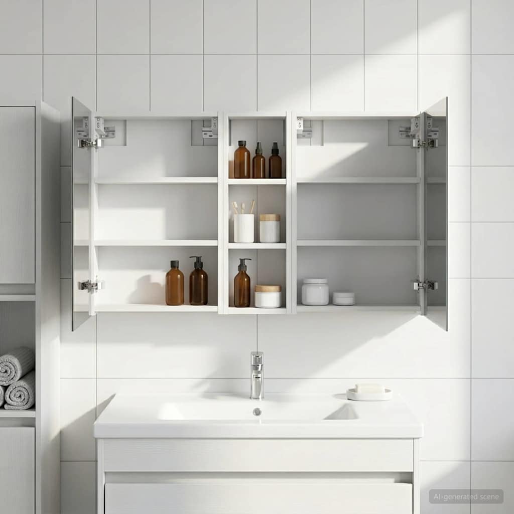 • Obsežen prostor za shranjevanje Zasnovana za optimalno izkoriščenost, ta kopalniška omarica ponuja široko kapaciteto shranjevanja z več policami in vrati na tečajih. Premislena postavitev omogoča enostavno organizacijo toaletnih potrebščin, tako da je vse pri roki. Njena prostorsko učinkovita zasnova povečuje funkcionalnost kopalnice z zmanjšanjem nered.