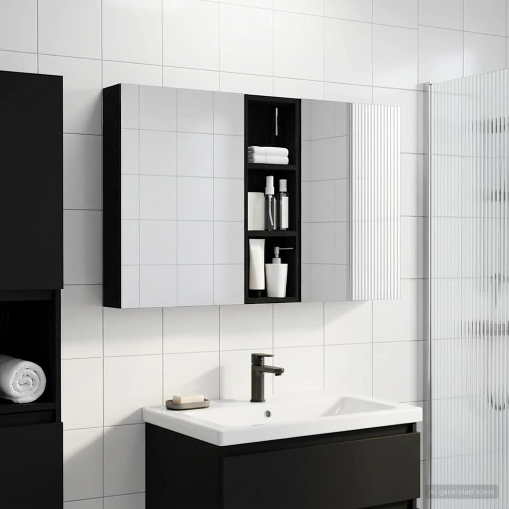 • Obsežen prostor za shranjevanje Zasnovana za optimalno izkoriščenost, ta kopalniška omarica ponuja široko kapaciteto shranjevanja z več policami in vrati na tečajih. Premislena postavitev omogoča enostavno organizacijo toaletnih potrebščin, tako da je vse pri roki. Njena prostorsko učinkovita zasnova povečuje funkcionalnost kopalnice z zmanjšanjem nered.