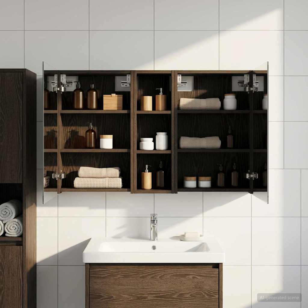 Ta moderni set kopalniških omaric je pravi primerkor for dodelane sodobne elegance, saj združuje eleganten dizajn s praktično funkcionalnostjo. Zasnovan za sodobnega lastnika, služi kot enota za shranjevanje in estetski kos opreme, ki se brez težav zlije z aktualnim videzom kopalnic. Nudi obilo prostora za shranjevanje, kar zagotavlja prostornost in enostaven dostop do potrebščin. Set omaric krepi vzdušje kopalnice z ogledali ter integrirano LED osvetlitvijo, kar ustvarja prijetno in organizirano okolje za vsakodnevne rutine.
