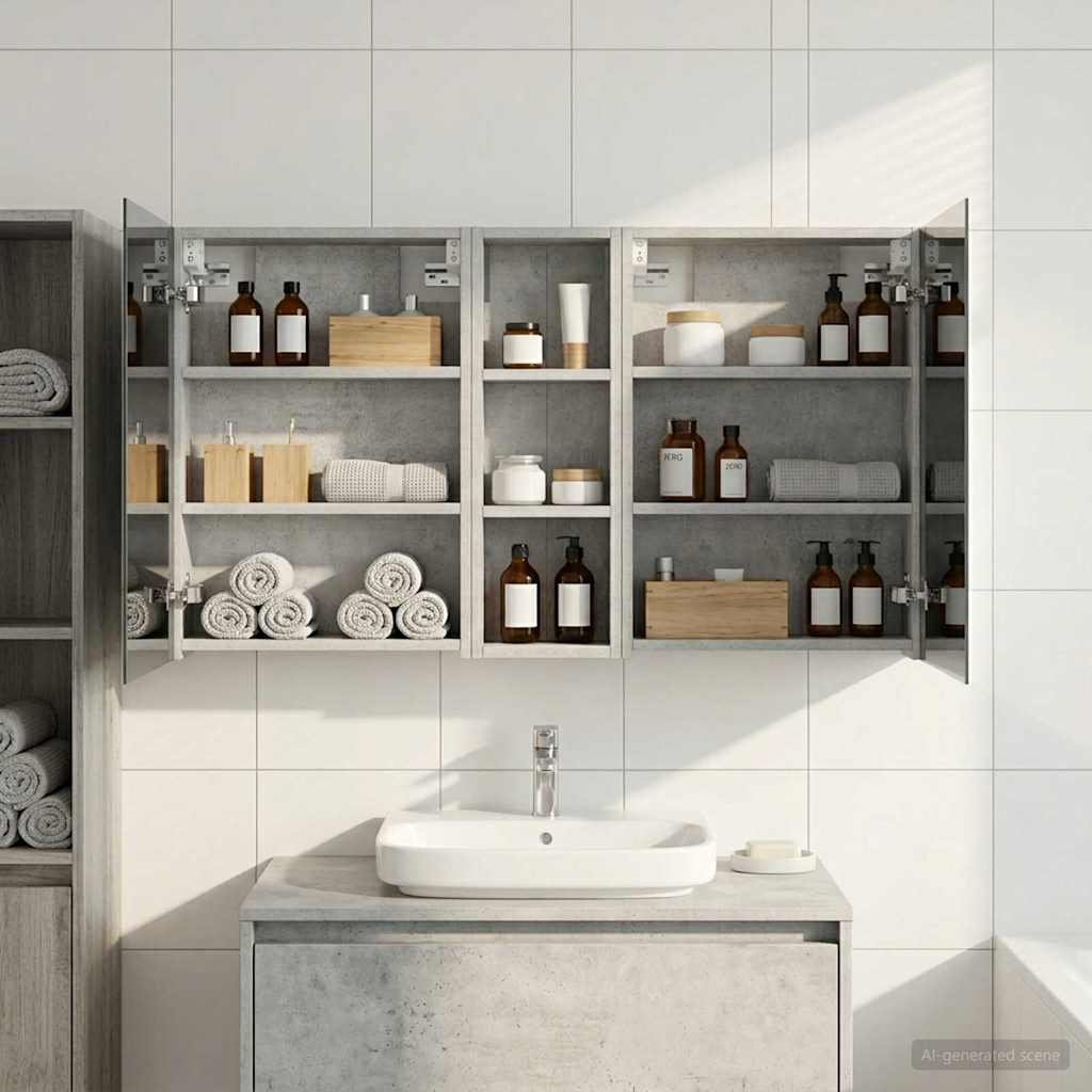 • Obsežen prostor za shranjevanje Zasnovana za optimalno izkoriščenost, ta kopalniška omarica ponuja široko kapaciteto shranjevanja z več policami in vrati na tečajih. Premislena postavitev omogoča enostavno organizacijo toaletnih potrebščin, tako da je vse pri roki. Njena prostorsko učinkovita zasnova povečuje funkcionalnost kopalnice z zmanjšanjem nered.