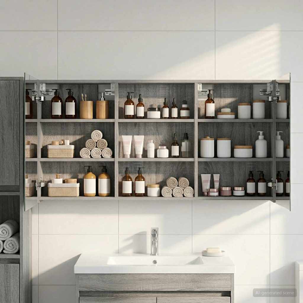 • Obsežen prostor za shranjevanje Zasnovana za optimalno izkoriščenost, ta kopalniška omarica ponuja široko kapaciteto shranjevanja z več policami in vrati na tečajih. Premislena postavitev omogoča enostavno organizacijo toaletnih potrebščin, tako da je vse pri roki. Njena prostorsko učinkovita zasnova povečuje funkcionalnost kopalnice z zmanjšanjem nered.
