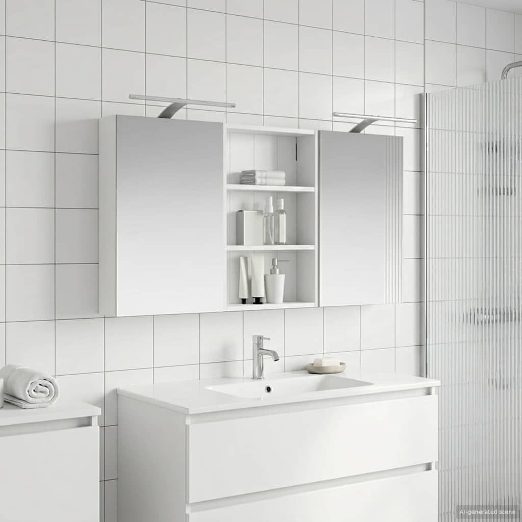 • Obsežen prostor za shranjevanje Zasnovana za optimalno izkoriščenost, ta kopalniška omarica ponuja široko kapaciteto shranjevanja z več policami in vrati na tečajih. Premislena postavitev omogoča enostavno organizacijo toaletnih potrebščin, tako da je vse pri roki. Njena prostorsko učinkovita zasnova povečuje funkcionalnost kopalnice z zmanjšanjem nered.