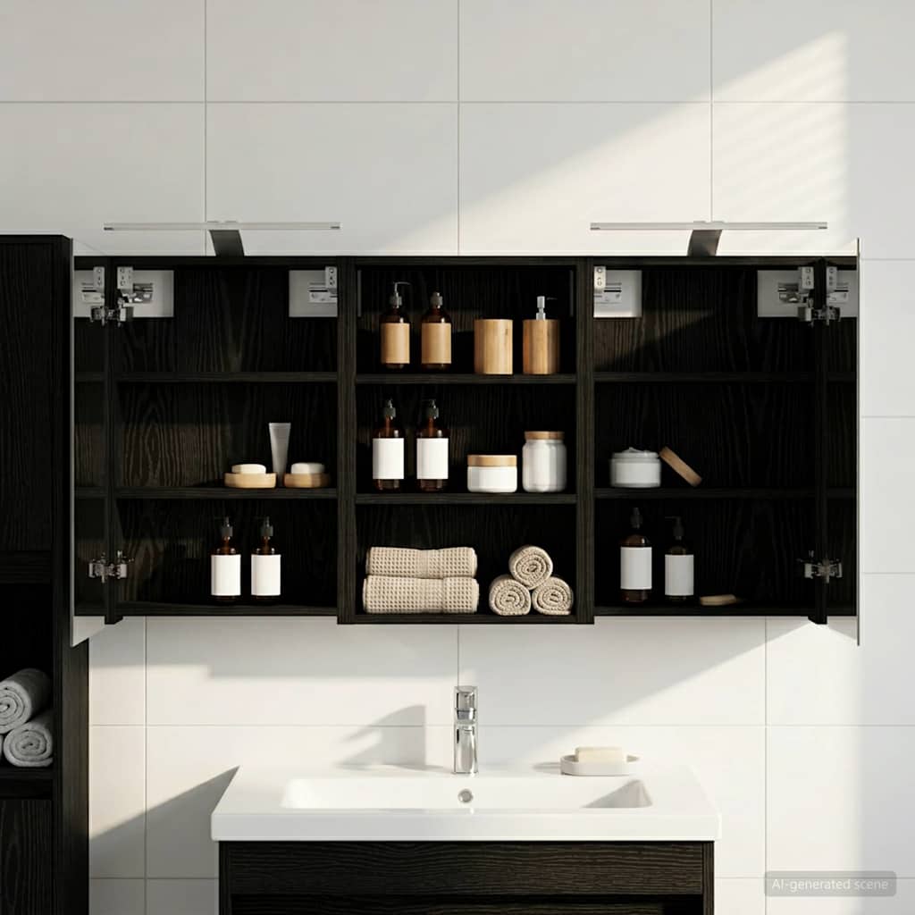 Ta moderni set kopalniških omaric je pravi primerkor for dodelane sodobne elegance, saj združuje eleganten dizajn s praktično funkcionalnostjo. Zasnovan za sodobnega lastnika, služi kot enota za shranjevanje in estetski kos opreme, ki se brez težav zlije z aktualnim videzom kopalnic. Nudi obilo prostora za shranjevanje, kar zagotavlja prostornost in enostaven dostop do potrebščin. Set omaric krepi vzdušje kopalnice z ogledali ter integrirano LED osvetlitvijo, kar ustvarja prijetno in organizirano okolje za vsakodnevne rutine.