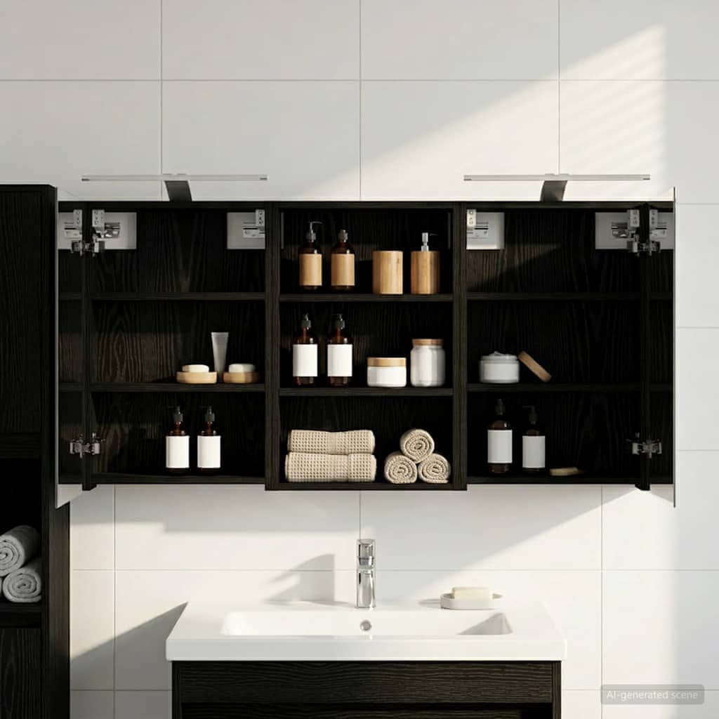 • Obsežen prostor za shranjevanje Zasnovana za optimalno izkoriščenost, ta kopalniška omarica ponuja široko kapaciteto shranjevanja z več policami in vrati na tečajih. Premislena postavitev omogoča enostavno organizacijo toaletnih potrebščin, tako da je vse pri roki. Njena prostorsko učinkovita zasnova povečuje funkcionalnost kopalnice z zmanjšanjem nered.