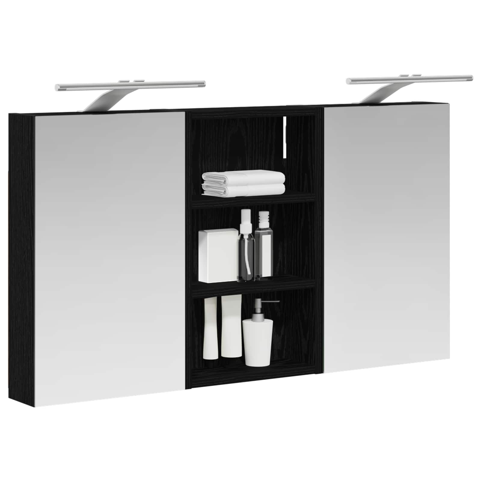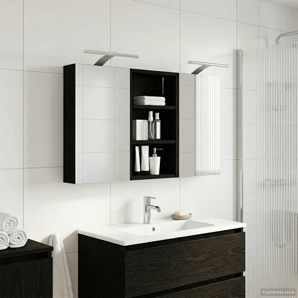 Vidaxl Komplet omaric za kopalnico z LED lučmi 3 pcs 90 x 10,5 x 50 cm