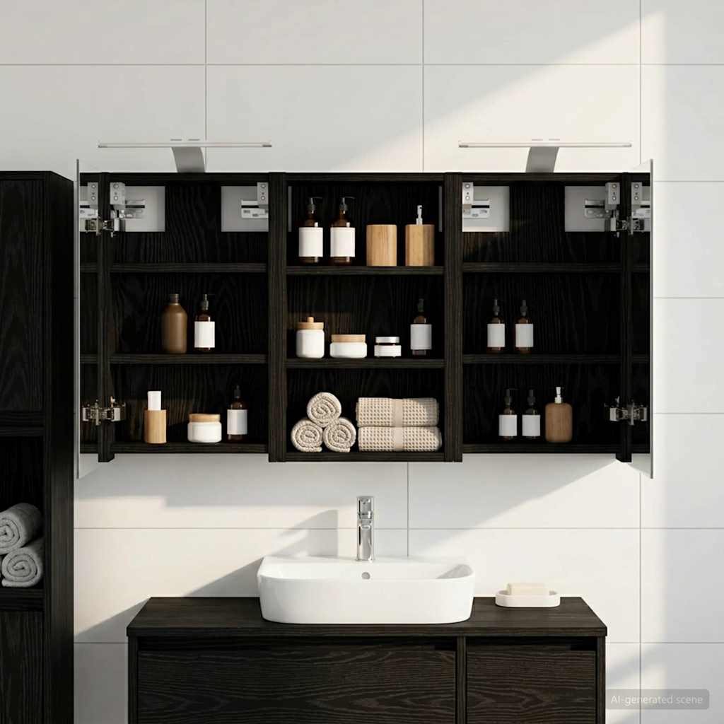 Ta moderni set kopalniških omaric je pravi primerkor for dodelane sodobne elegance, saj združuje eleganten dizajn s praktično funkcionalnostjo. Zasnovan za sodobnega lastnika, služi kot enota za shranjevanje in estetski kos opreme, ki se brez težav zlije z aktualnim videzom kopalnic. Nudi obilo prostora za shranjevanje, kar zagotavlja prostornost in enostaven dostop do potrebščin. Set omaric krepi vzdušje kopalnice z ogledali ter integrirano LED osvetlitvijo, kar ustvarja prijetno in organizirano okolje za vsakodnevne rutine.