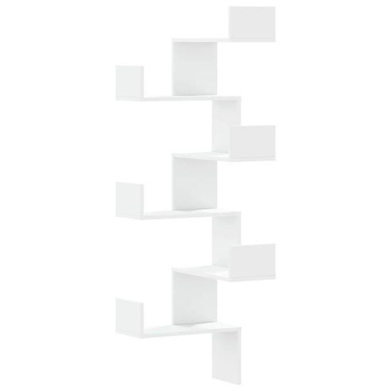 Vidaxl Stenska kotna polica bela 45x45x147 cm inženirski les