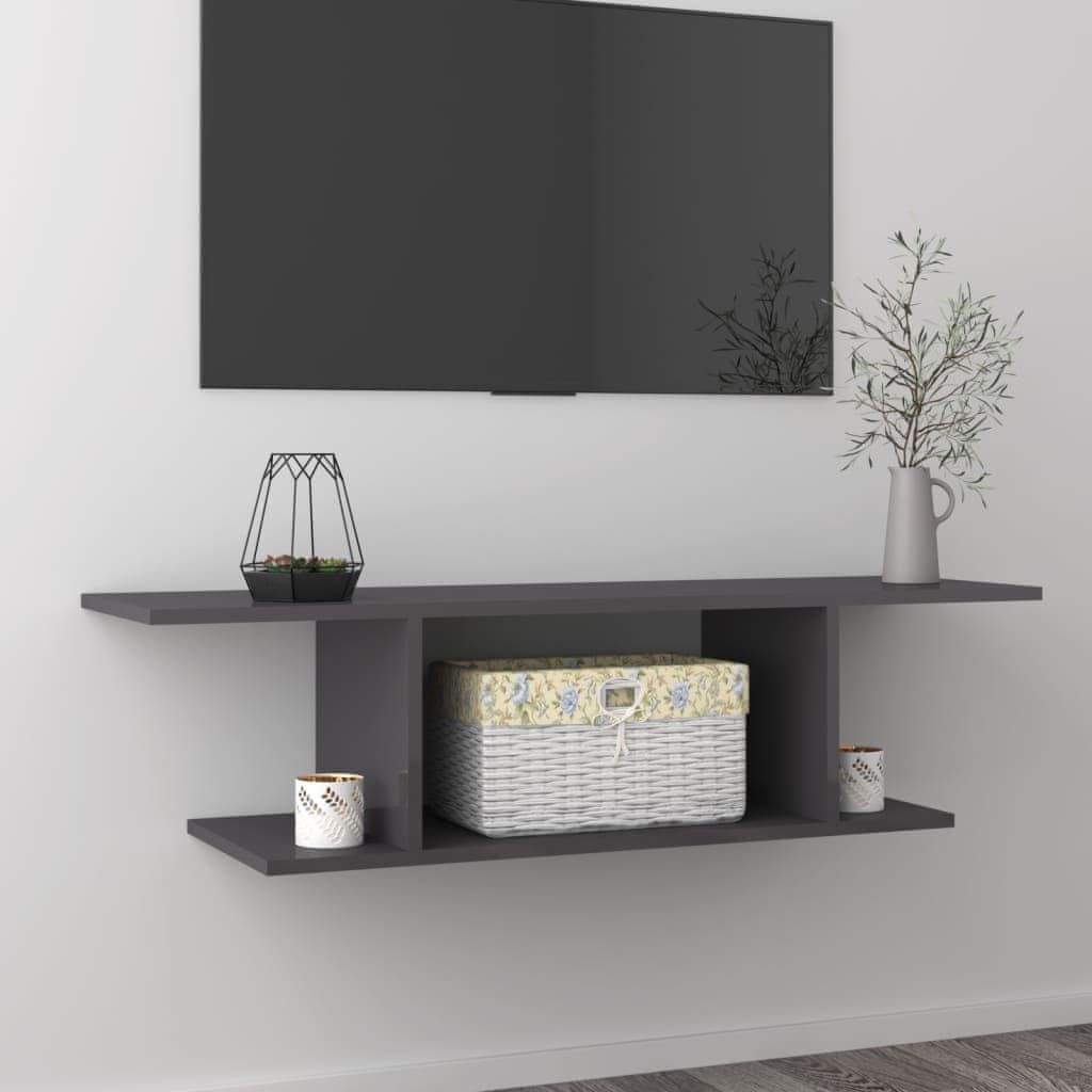 Vidaxl Stenska TV omarica visok sijaj siva 103x30x26,5 cm