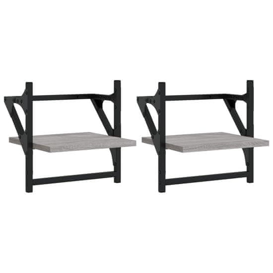 Vidaxl Stenske police s prečkami 2 kosa siva sonoma 30x25x30 cm